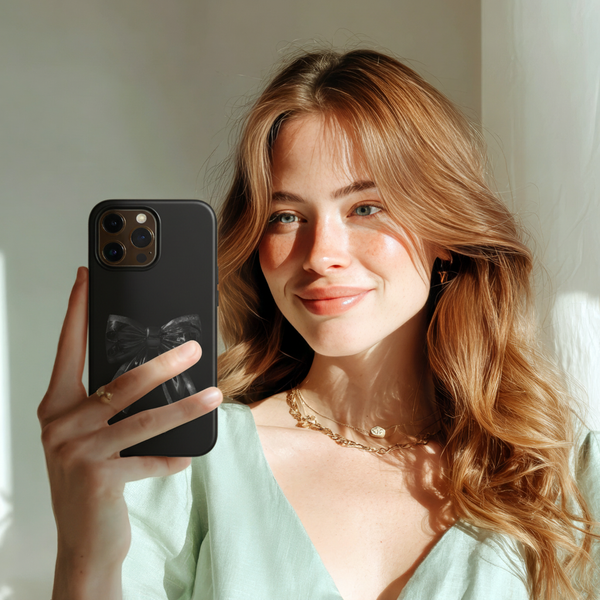 The subtle shimmer and artistic rendering of the bow give off a sophisticated and subtly playful vibe, perfect for adding a touch of chic to your everyday life.