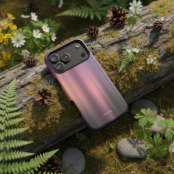 Blending dreamy hues of rose, lilac, and deep plum in an abstract, vertical gradient, the design evokes a sense of calm and modern sophistication.