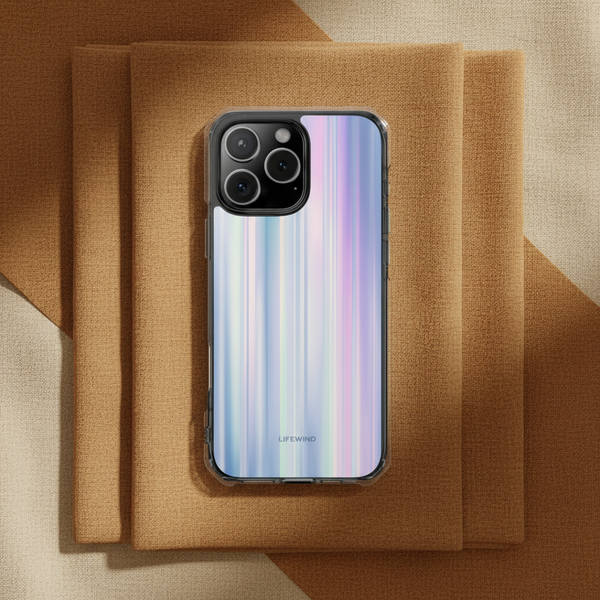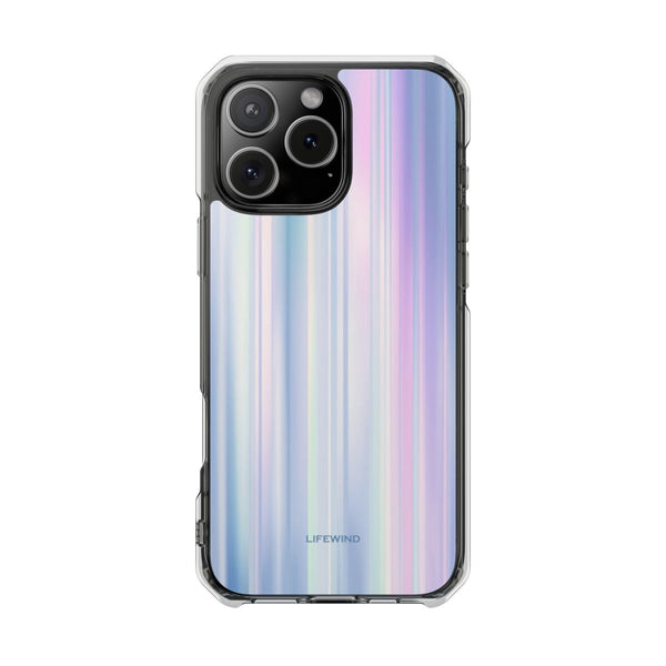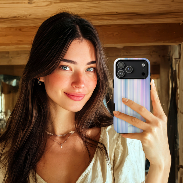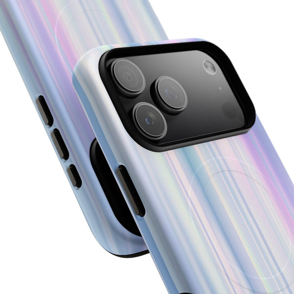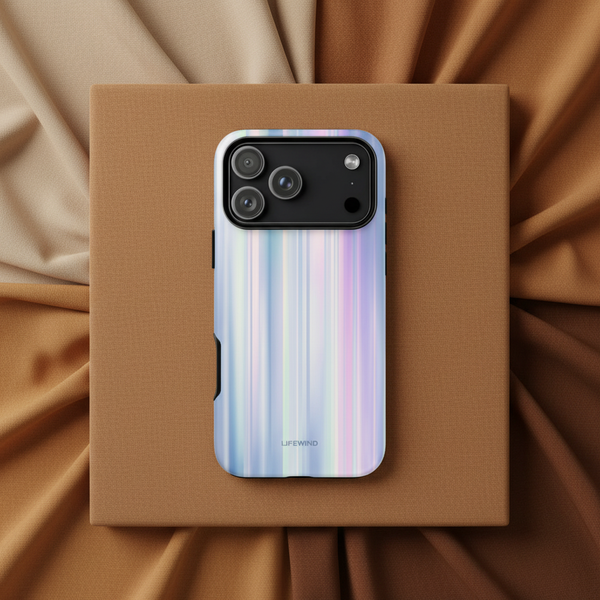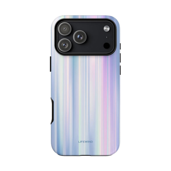 Capture the ethereal beauty of the aurora borealis with this stunning design, featuring soft vertical lines in shimmering shades of lilac, blue, and pearl.