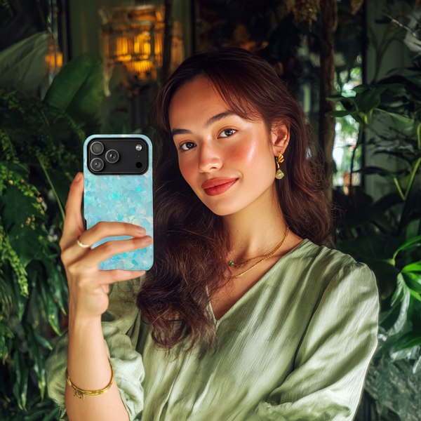 Adorn your device with this ethereal design, reminiscent of shimmering opals and tranquil ocean waters.